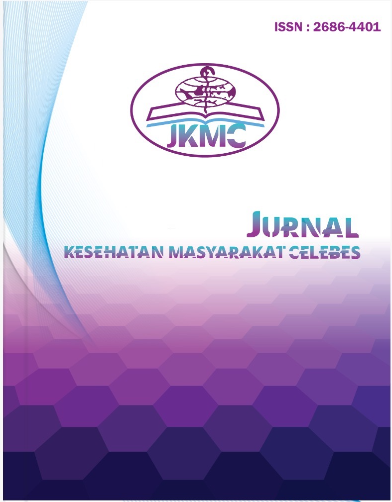 Vol 1 No 1 (2019)Jurnal Kesehatan Masyarakat Celebes (JKMC) adalah jurnal ilmiah yang diuraikan berdasarkan pendekatan kesehatan. Jurnal ini memuat hasil hasil penelitian, review artikel, letter to the editor, ataupun tulisan lainnya yang terkait dengan kesehatan. Khususnya yang terkait dengan: Epidemiologi, Biostatistik, Kesehatan lingkungan, Kesehatan dan keselamatan kerja,Gizi masyarakat,Kesehatan reproduksiKebijakan dan manajemen kesehatan, Promosi kesehatan.